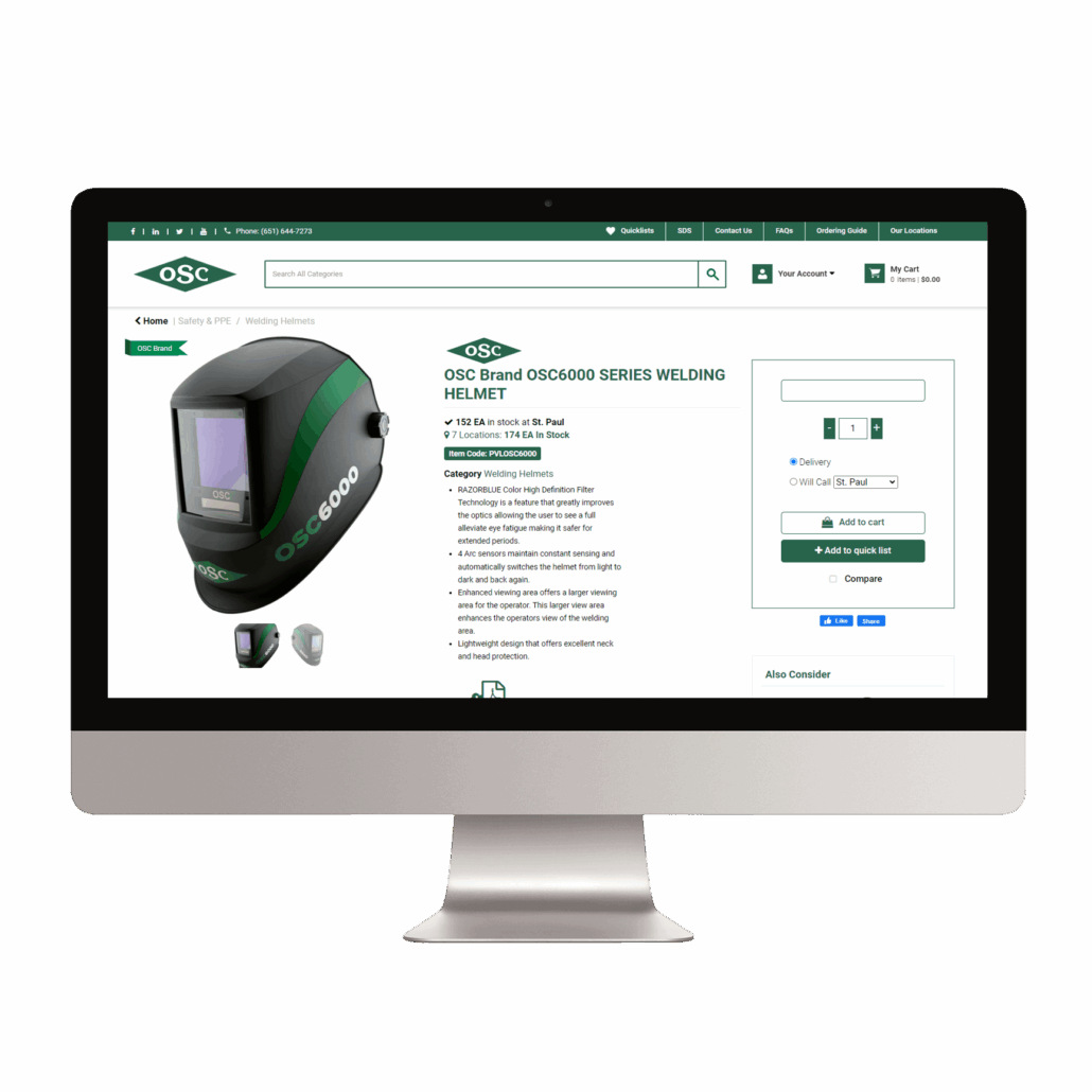 OSC’s online ordering platform, a user-friendly way to purchase your gas, dry ice, and welding supplies.